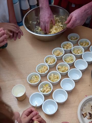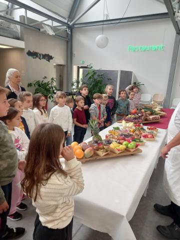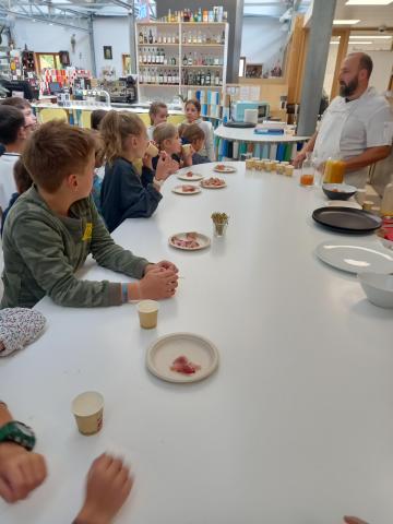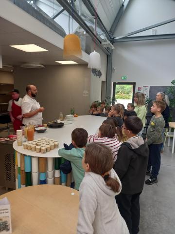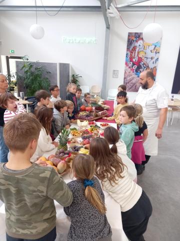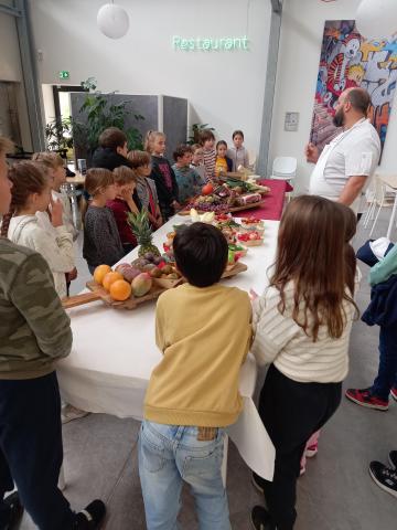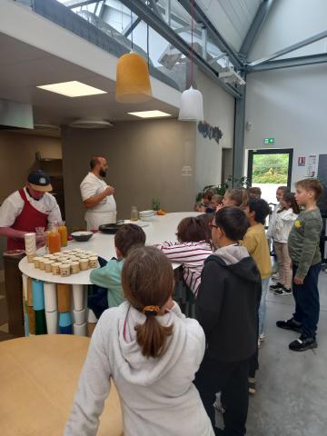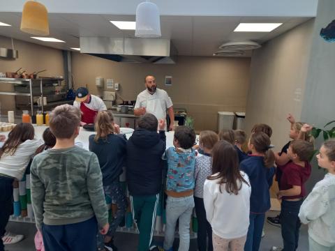 Après une explication des différents métiers exercés par M. Carballo, l'Histoire de ces métiers et un travail sur les goûts (salé, sucré, amer, acide et unami), les enfants ont pu aider le chef à préparer des alliances de saveurs sur 2 plats.